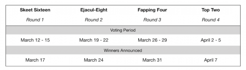 Will #blowjob beat spank? Will #hairy exit early? Will #ass be the David to #squirt’s Goliath? You decide!